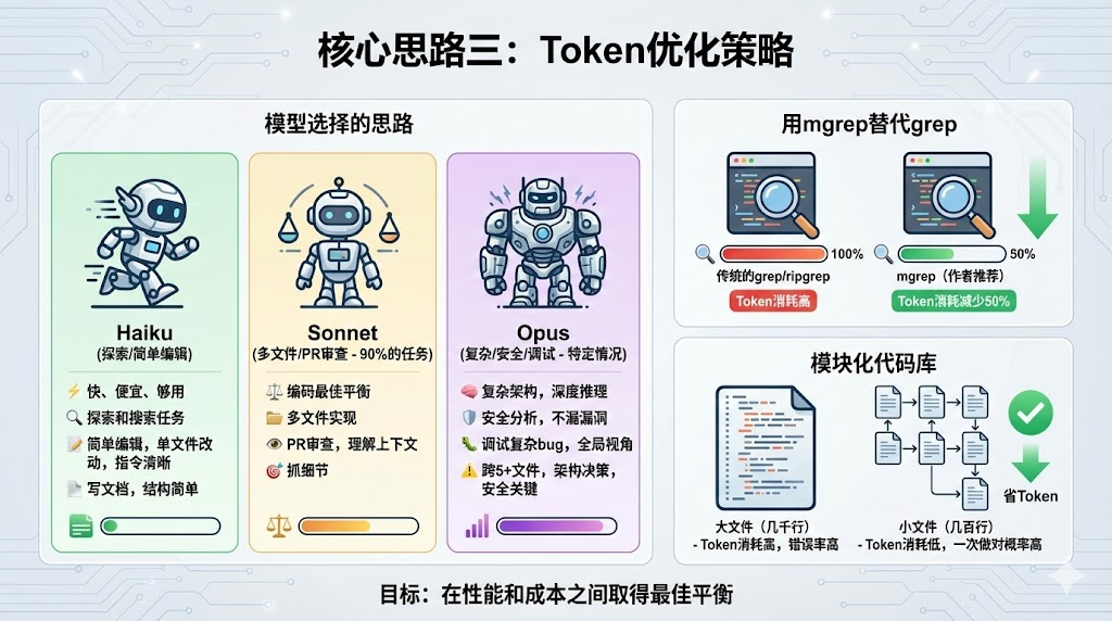 第二步:学习Token优化策略,调整模型选择,用mgrep替代grep。