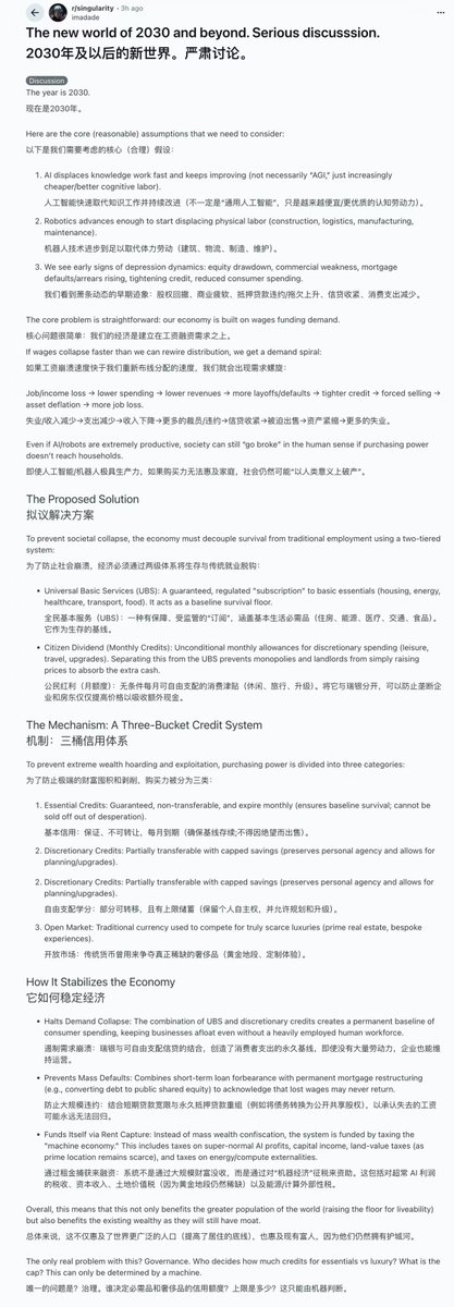 更有深度参与者指出,这套复杂的信用配额系统,人类政府根本无法管理,唯一的终局就是由 AI 担任“治理者”。
