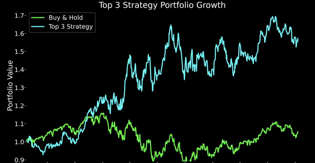 策略很简单——每天买入上涨概率最高的 前 3 个仓位。