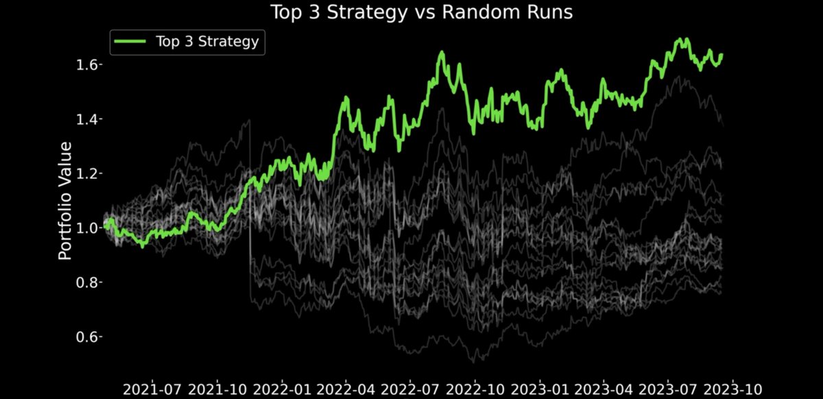 结果持续跑赢随机策略,而且胜率稳定高于 59%——有时甚至能到 78%
