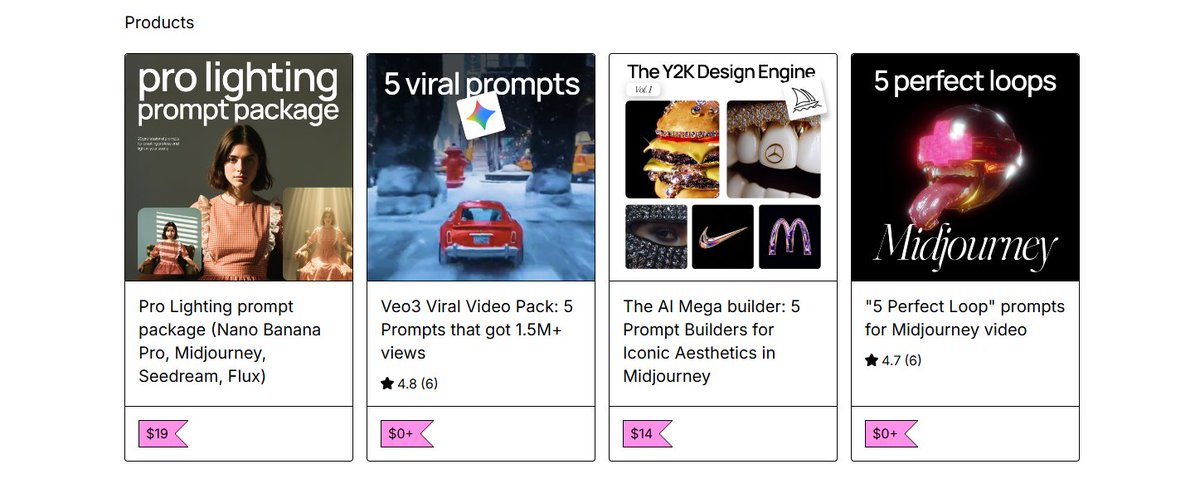Links go straight to the original posts with full prompts/details.