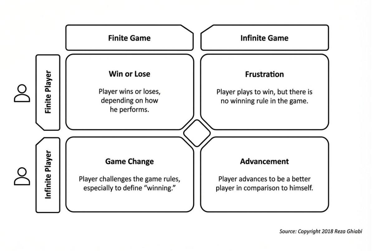 In 1986, NYU religious studies professor James Carse published Finite and Infinite Games. He argued there are only two types of games: finite games, which are played to win, and infinite games, which are played to keep the game going. Simon Sinek turned this into a bestselling business philosophy in 2019, suggesting that great companies should play infinite games and focus on longevity.