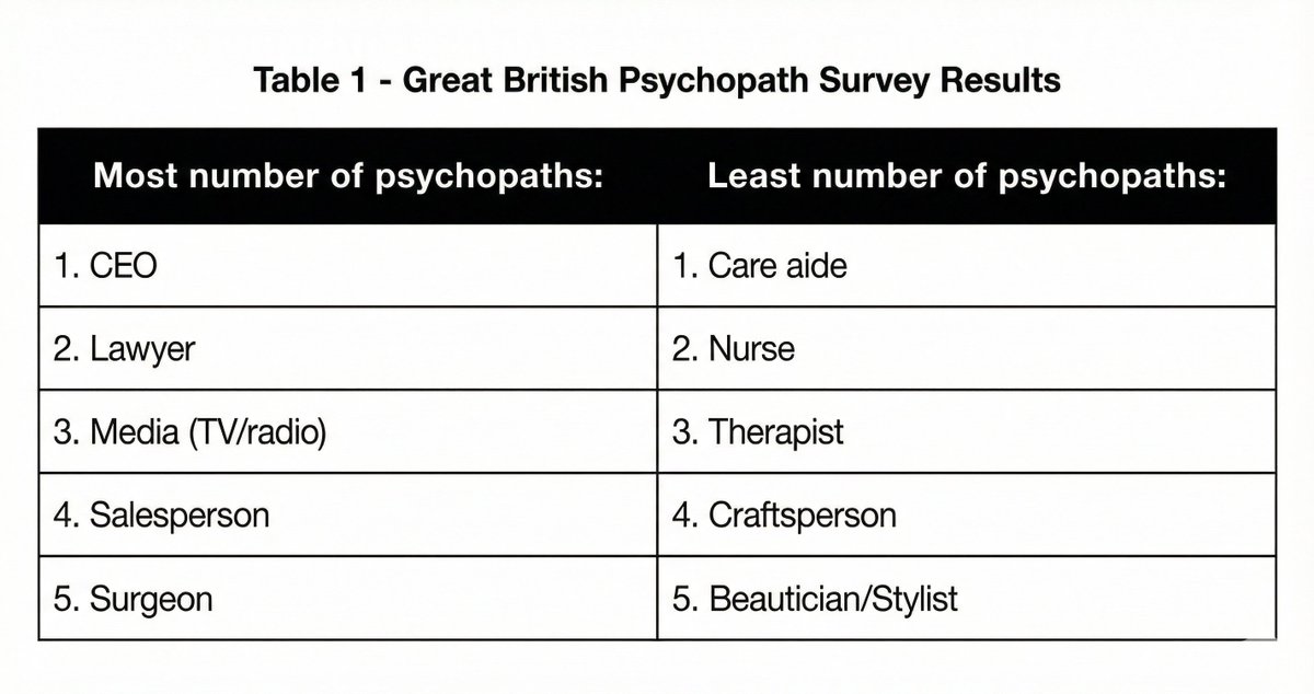 Kevin Dutton's research on psychopathic traits across professional populations found that CEOs rank alongside surgeons at the top of the spectrum. This doesn’t mean these individuals are monsters. Instead, these roles attract people who can separate emotional responses from strategic calculations.