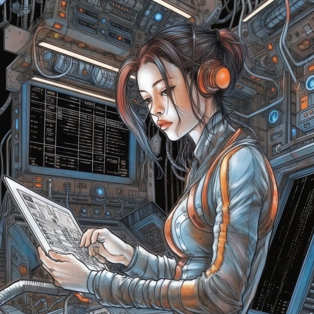 The future of UI is 2D, likely multimodal, likely hybrid, likely multi-device. Limited 3D. (“Futuristic UI” image by Midjourney.)