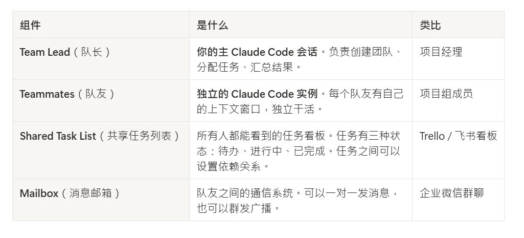 Agent Teams = 多个独立的AI大脑 + 实时内部通信 + 共享任务看板 + AI项目经理统筹