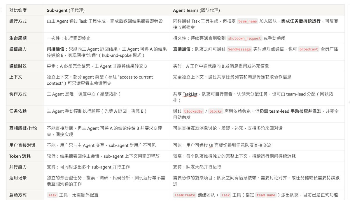 💰经验法则:需要快速完成独立小任务,用 Sub-agent;任务复杂、多模块、需要队友互相讨论,用 Agent Team。如果预算紧张且任务简单,Sub-agent 更省钱。