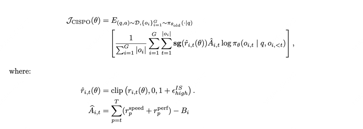 We leverage CISPO as the core algorithm, specifically adapted for the characteristics of long-horizon Agents.