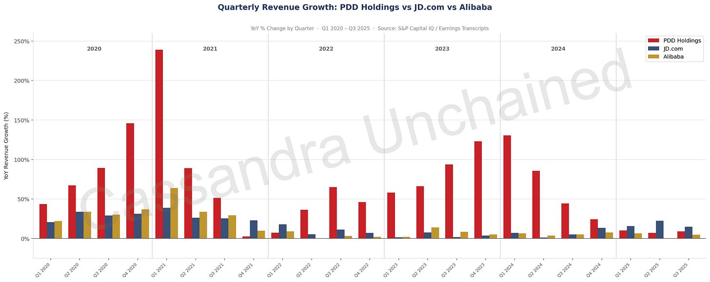 PDD 的披露问题令人烦躁。它那种非正统的自举式成功看起来增长得过于指数级,以至于披露难以跟上——如果披露跟上这件事本身可行的话。我希望这不是内部控制不足的反映。