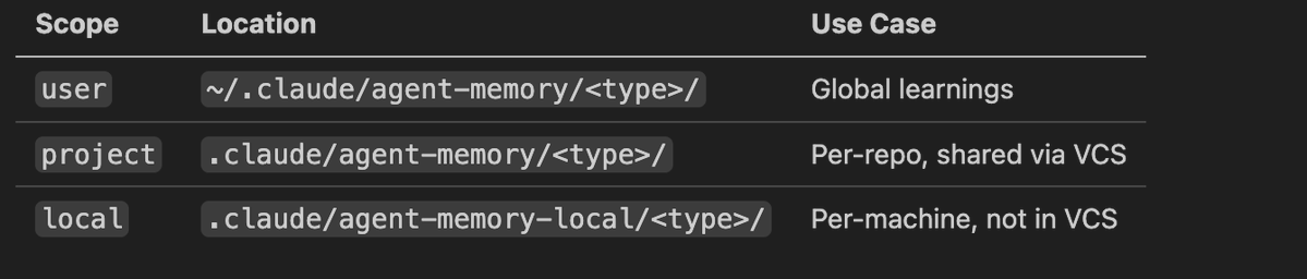 代理可以在三种范围里维持跨调用的持久记忆: