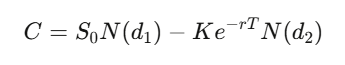 return S*norm.cdf(d1) - K*np.exp(-r*T)*norm.cdf(d2)