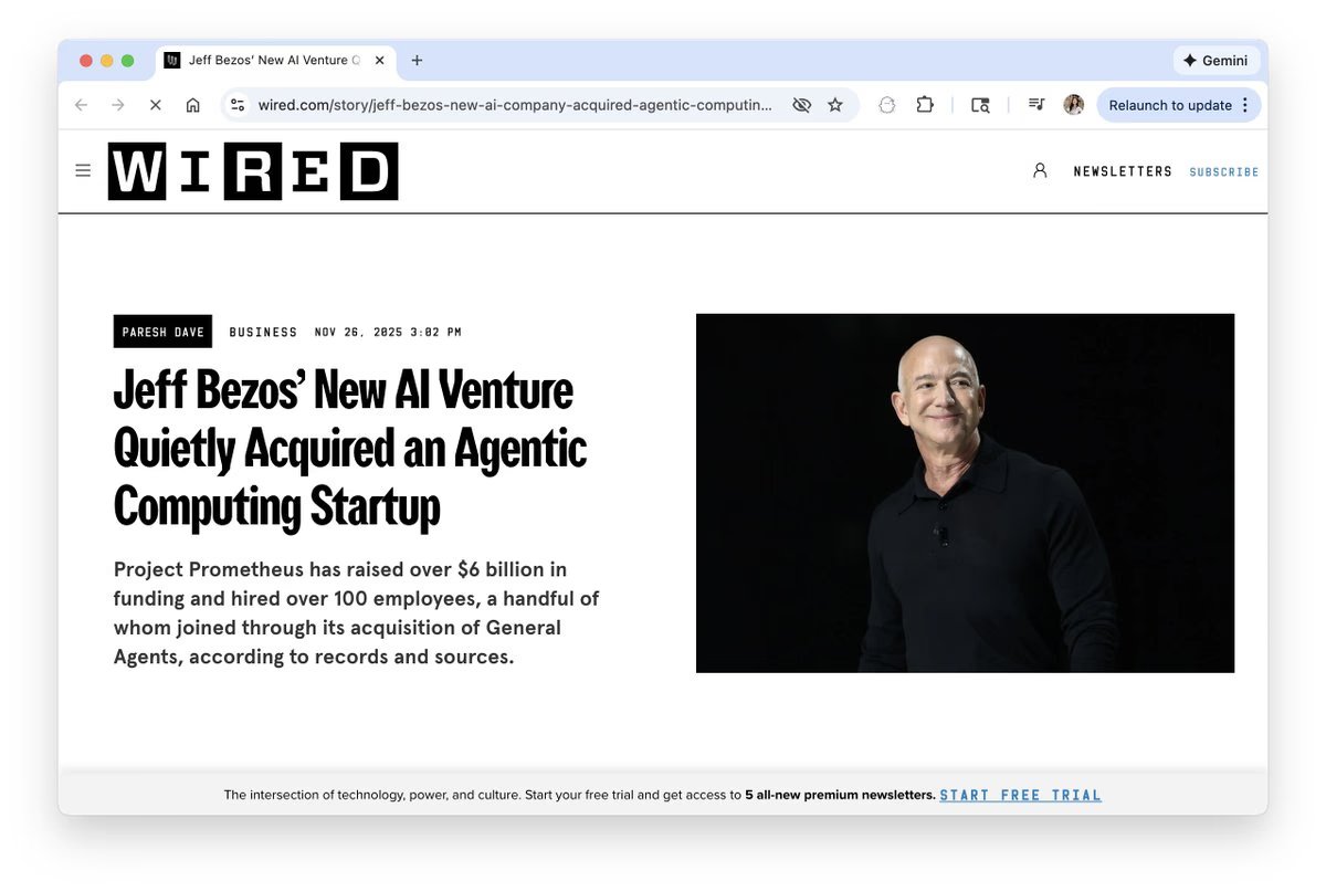 General Agents (Now Project Prometheus): is an AI initiative led by Jeff Bezos focused on "physical AI" for manufacturing and engineering.