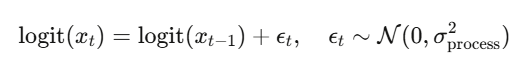 pf = PredictionMarketParticleFilter(prior_prob=0.50, process_vol=0.03)