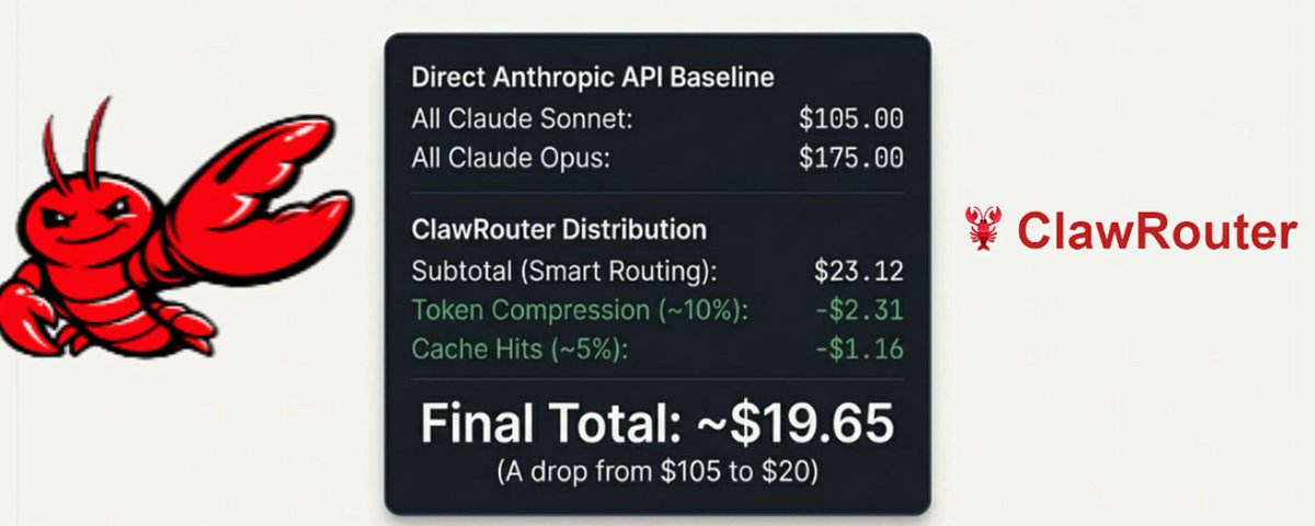 成本数据来自真实生产环境中付费用户的流量,覆盖 20,000+ 次请求,时间为 2026 年 3 月。节省幅度因负载而异——智能体更重、上下文更长的负载会获得更大的压缩收益。ClawRouter 是开源项目,也是 BlockRun 生态的一部分。