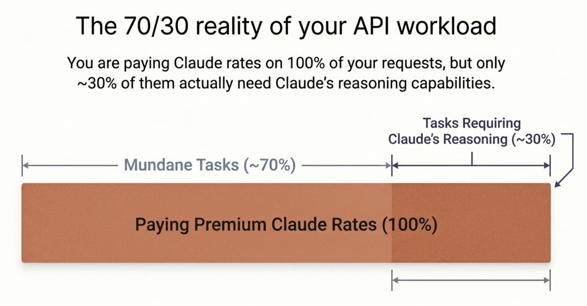 问题很简单:你把 Claude 的价格用在了 100% 的请求上,但真正需要 Claude 的可能只有大约 30%。