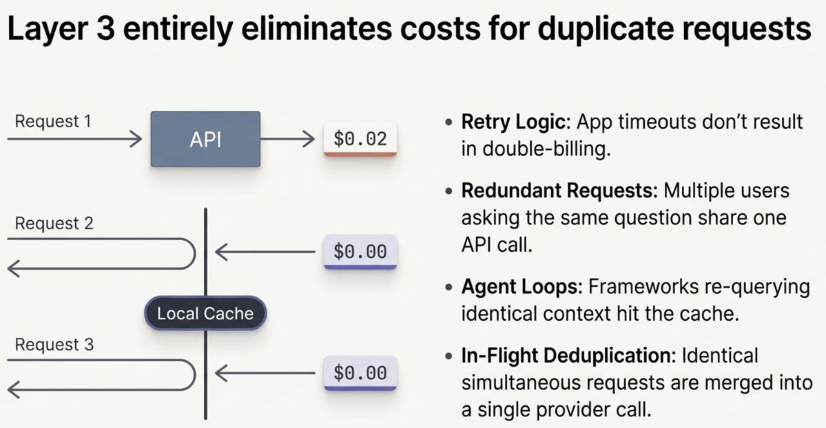 Request 3: "Summarize this document" → cache hit → $0.00 → instant