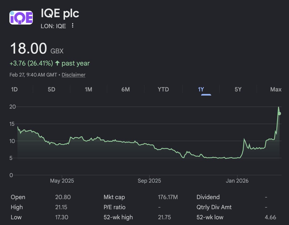 And since other players are hitting a physical capacity ceiling, vertically integrated players like $COHR are capped out, hyperscalers and module makers are desperate for alternative capacity in players like $IQE