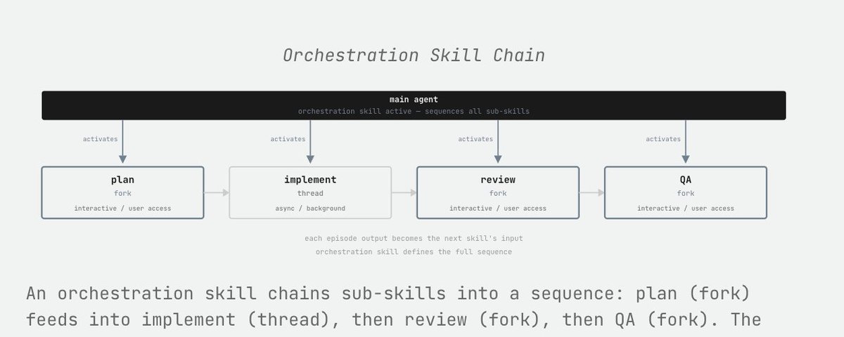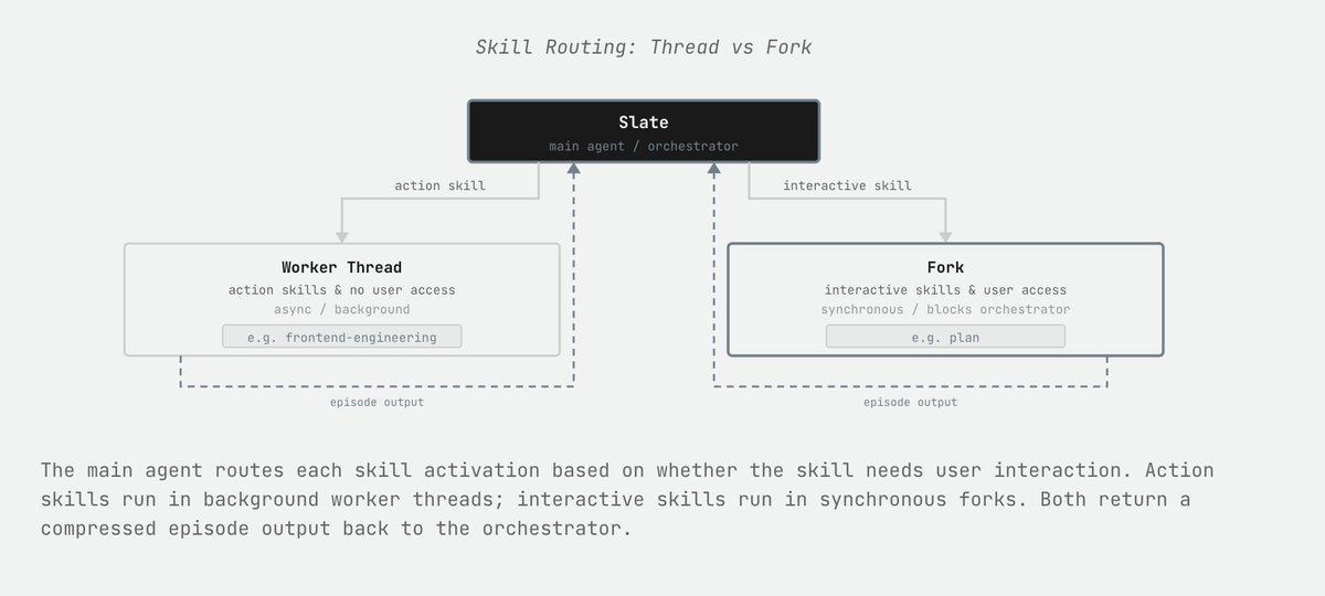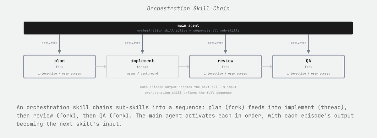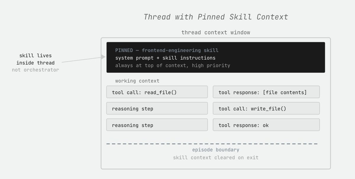 It can then directly apply something like a frontend-engineering skill to a thread that it spins up, and that thread, for that episode, will have the skill active. The skill deactivates at the termination of the episode, and the thread's context is cleaned up!