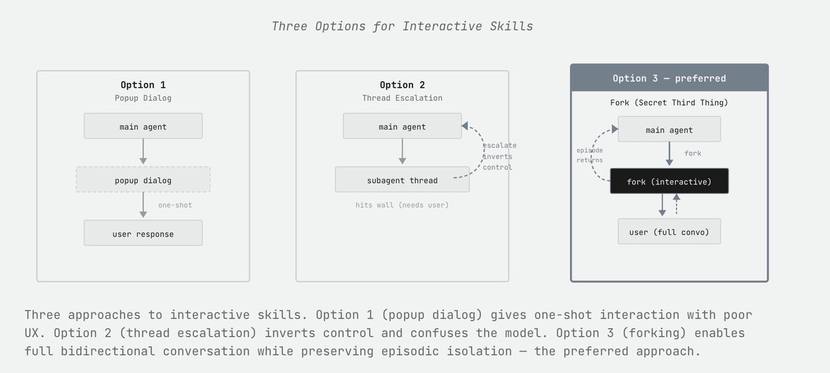 We added synchronous forking so that the user could continue talking to an agent that was basically the same orchestrator agent, except with the added benefit that once the skill use was done, the isolation and episodic memory would still kick in.