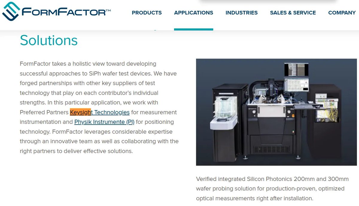 Keysight handles the optical measurement side as FormFactor’s official Preferred Partner, supplying the instruments that actually send and receive optical signals and extract measurement data.[8]