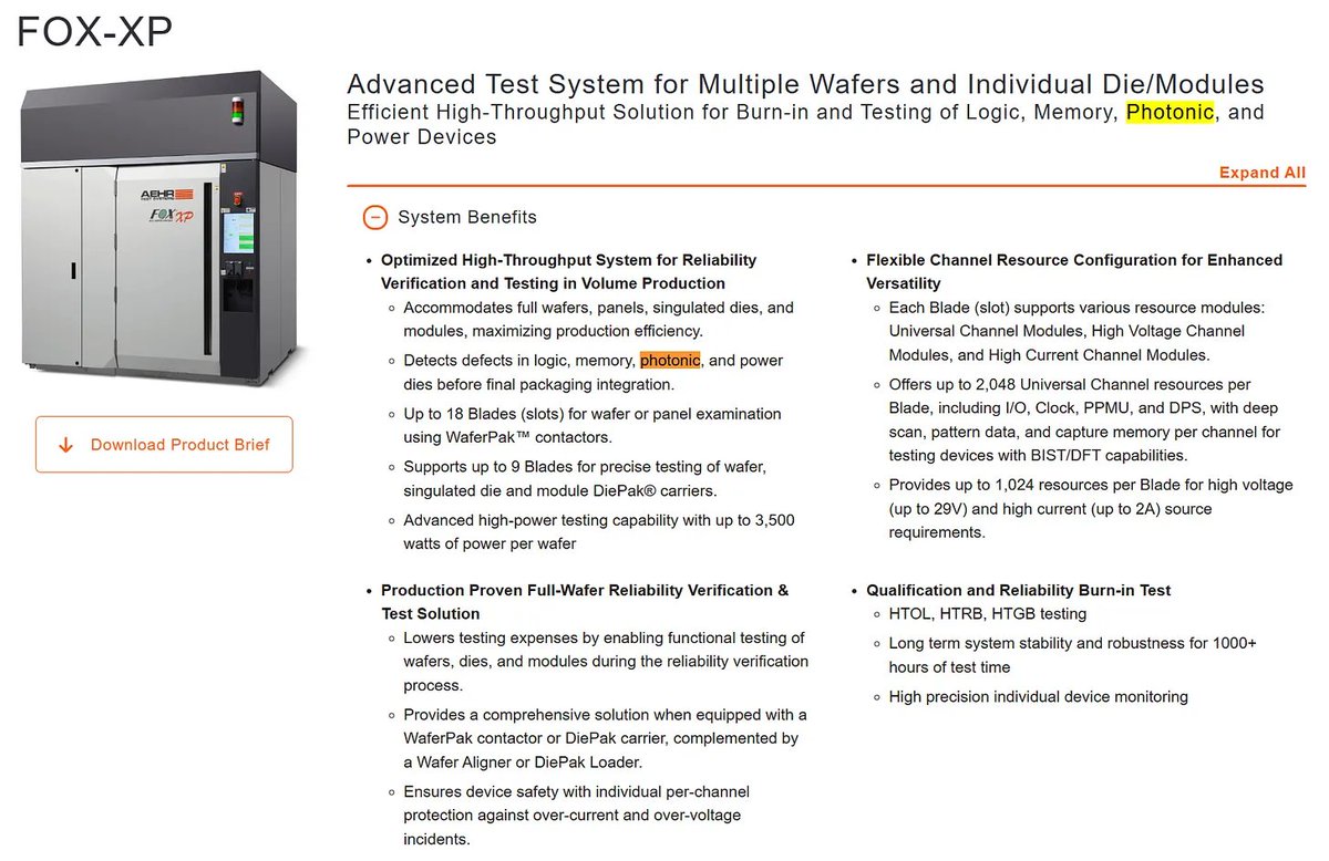 Aehr’s core platform is the FOX-XP, capable of applying up to 3,500 watts per wafer in a high-power burn-in configuration while processing nine wafers in parallel. That high-power FOX-XP configuration is already installed and running in production at a world-leading SiPh IC supplier.[4]