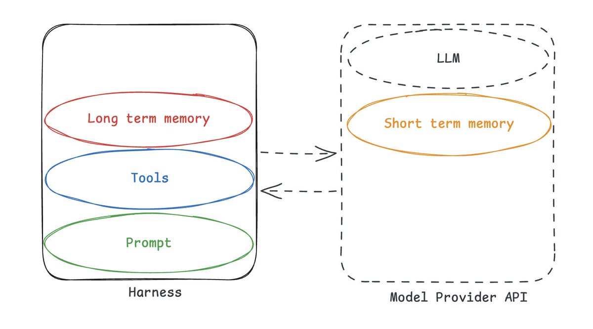 Memory is just a form of context. Short term memory (messages in the conversation, large tool call results) are handled by the harness. Long term memory (cross session memory) needs to be updated and read by the harness. Sarah lists out many other ways the harness is tied to memory: