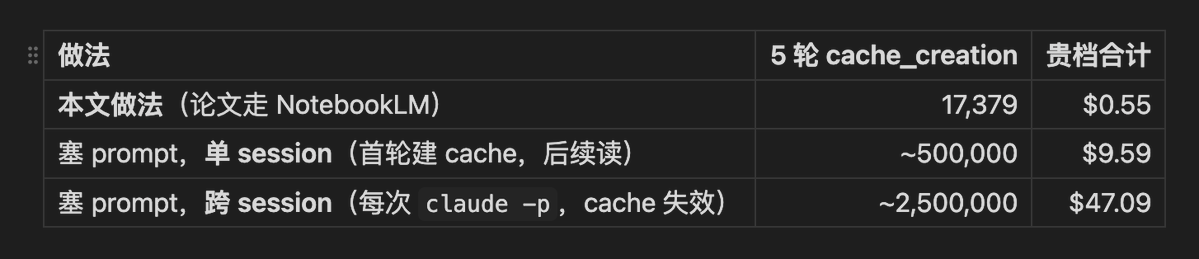 本文做法里论文压根不进 Claude,cache 命不命中都无所谓。